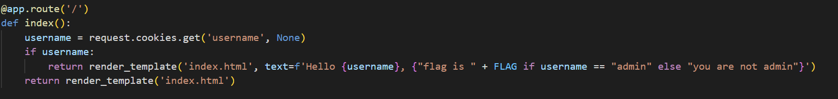 request.cookies.get() 이라는 명령어가 보이면 이처럼 문제를 맛있게 날로 먹으면 된다.