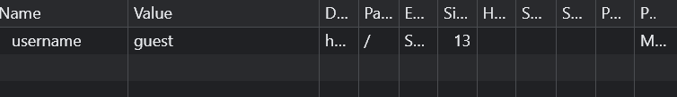 guest로 로그인하여 저장한 cookie라서 value가 guest로 지정되어 있다.