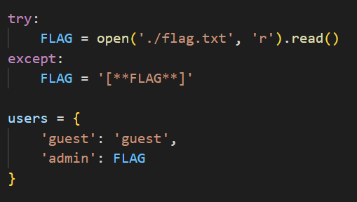 우선 quest의 id, pw가 보이지만 admin의 pw는 FLAG로 txt 파일에서 읽어들이는 거라 지금으로썬 알 수 없다.