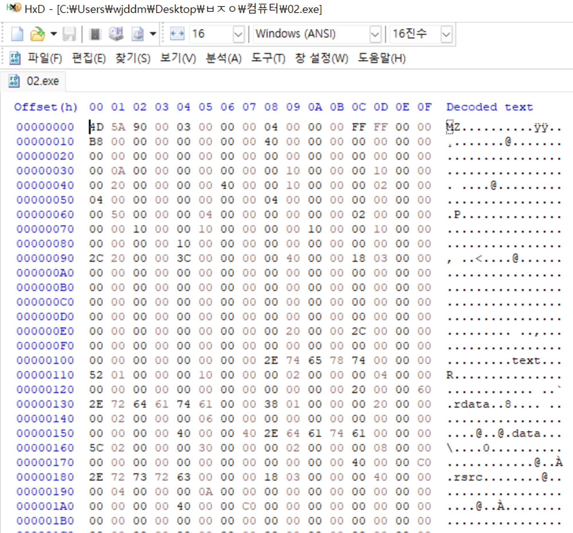 올리디버거로도 열리지 않아서 검색해 보니 HxD라는 헥스 에디터 프로그램을 사용해야 된다는 것을 알았다.