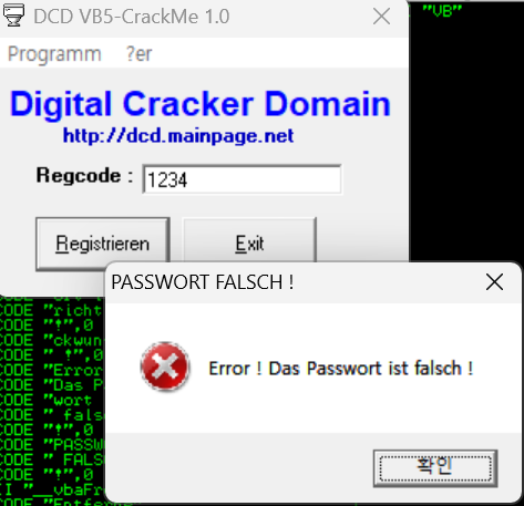 아무거나 입력하면 Error가 뜨는데 이때 쓰이는 함수가 뭔지 맞추라는 거 같아서 이뮤니티디버거로 열어서