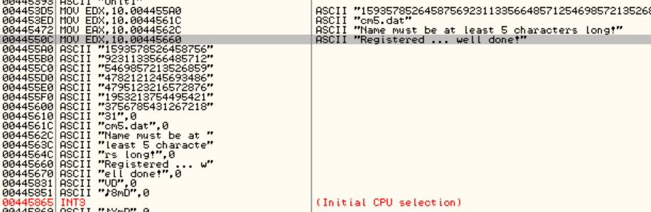 위를 둘러보니 점프문이 있었다. 이 점프문에 걸릴 경우 성공 메세지 부분을 뛰어넘게 되니 이 코드가 등록 성공으로 가는 분기점을 알 수 있으며 OPCODE는 75 55이다.