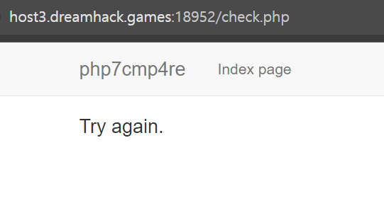 아무거나 입력해서 확인해 보니까 check.php로 넘어가면서 Try again 문자열이 뜬다.