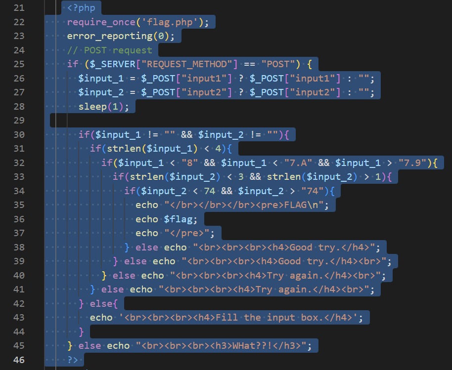 22: require_once 함수는 다른 php 파일의 클래스를 읽어오는 것이다. 따라서 flag.php를 읽어오는 코드이다.