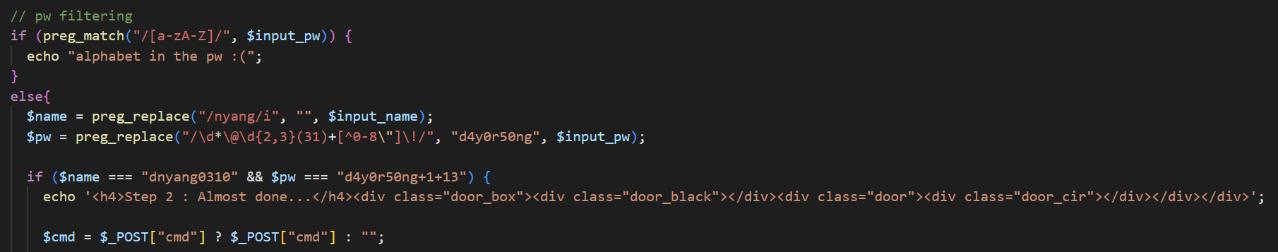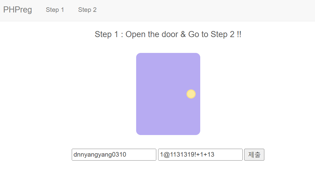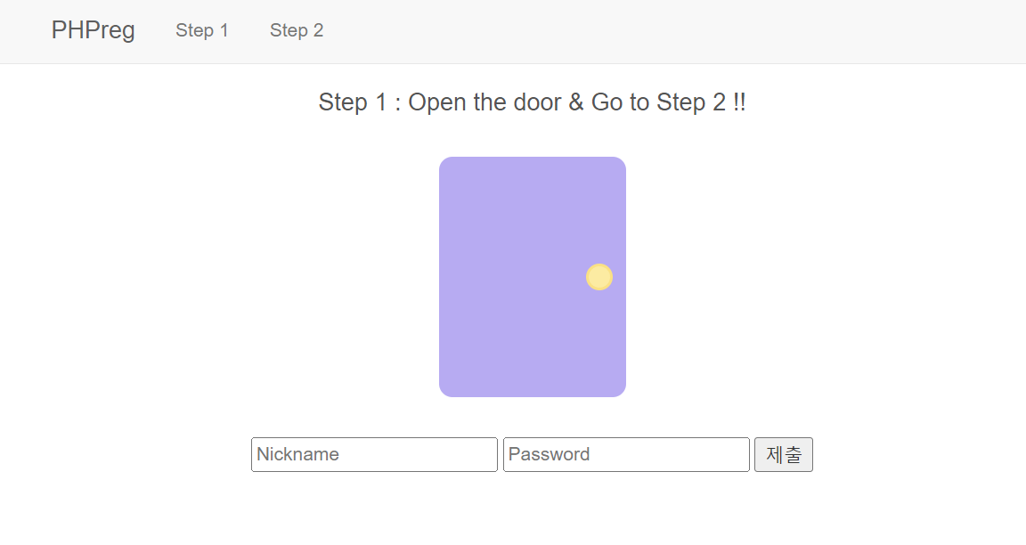 Description php로 작성된 페이지입니다. 알맞은 Nickname과 Password를 입력하면 Step 2로 넘어갈 수 있습니다. Step 2에서 system() 함수를 이용하여 플래그를 획득하세요. 플래그는 ../dream/flag.txt에 위치합니