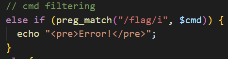 에러를 출력하길래 코드를 확인해 보니 flag 문자열을 필터링 한다.