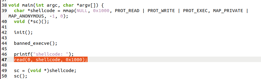 main 함수가 아닌 다른 함수들은 execve, execveat 시스템 콜을 사용하지 못하도록 하며, 풀이와 관련이 없는 함수입니다.