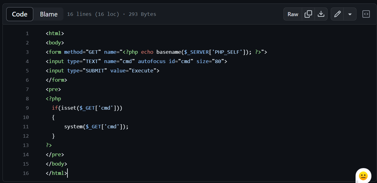 구글링 한 결과 웹쉘 즉, 웹에서 쉘 코드를 실행할 수 있는 코드가 존재했다.