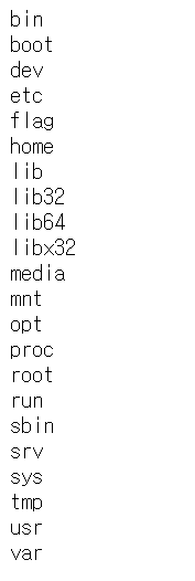 / 경로에 있는 실행파일이기에 /flag 명령어를 입력하여서 실행했더니 flag가 출력됐다.