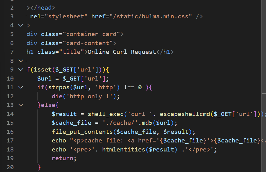 포함되었다면 shell_exec 함수를 이용하여 curl 명령어를 실행한다.