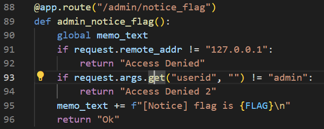 /admin/notice_flag에서 userid 값이 admin이 아니면 Access Denied 2를 띄우며 리턴되지만