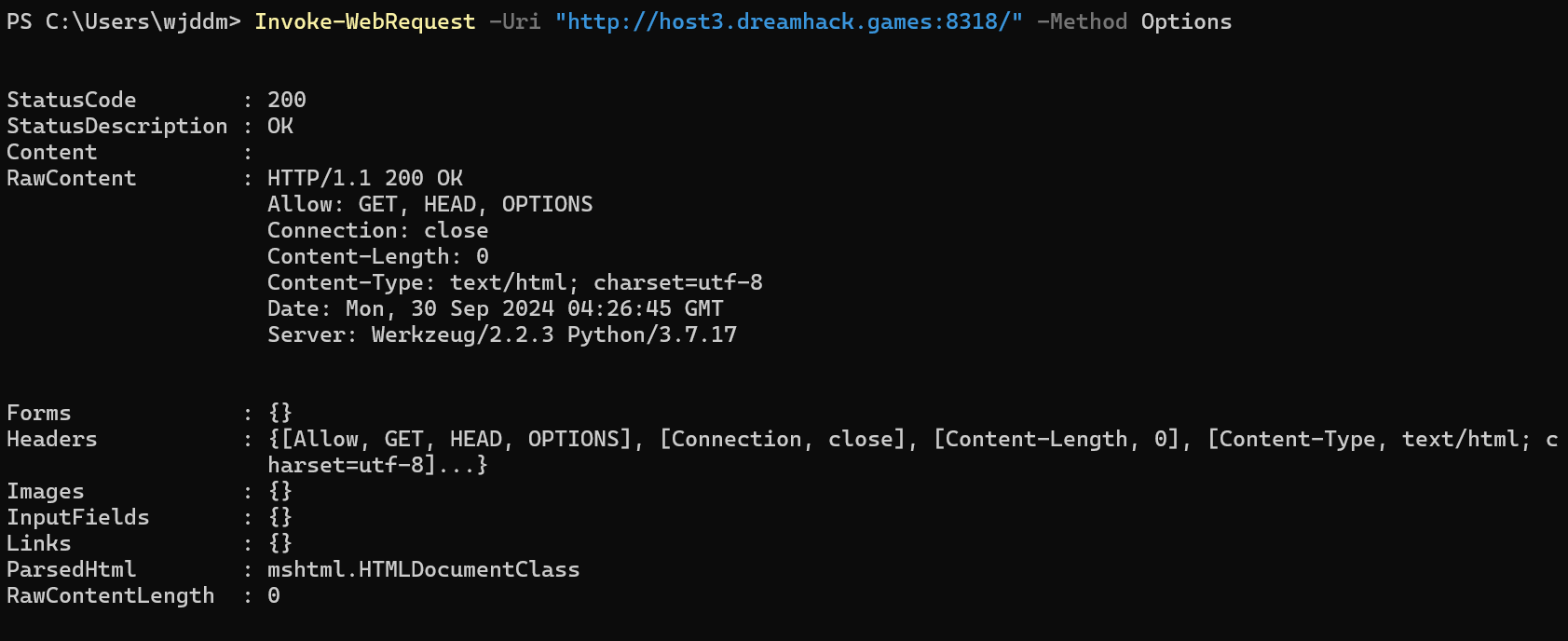 GET, OPTIONS로는 접근할 수 없으니, HEAD 메소드로 접근해야 한다.