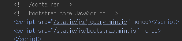 /static/js/jquery.min.js랑 /static/js/bootstrap.min.js 코드를 사용한다.