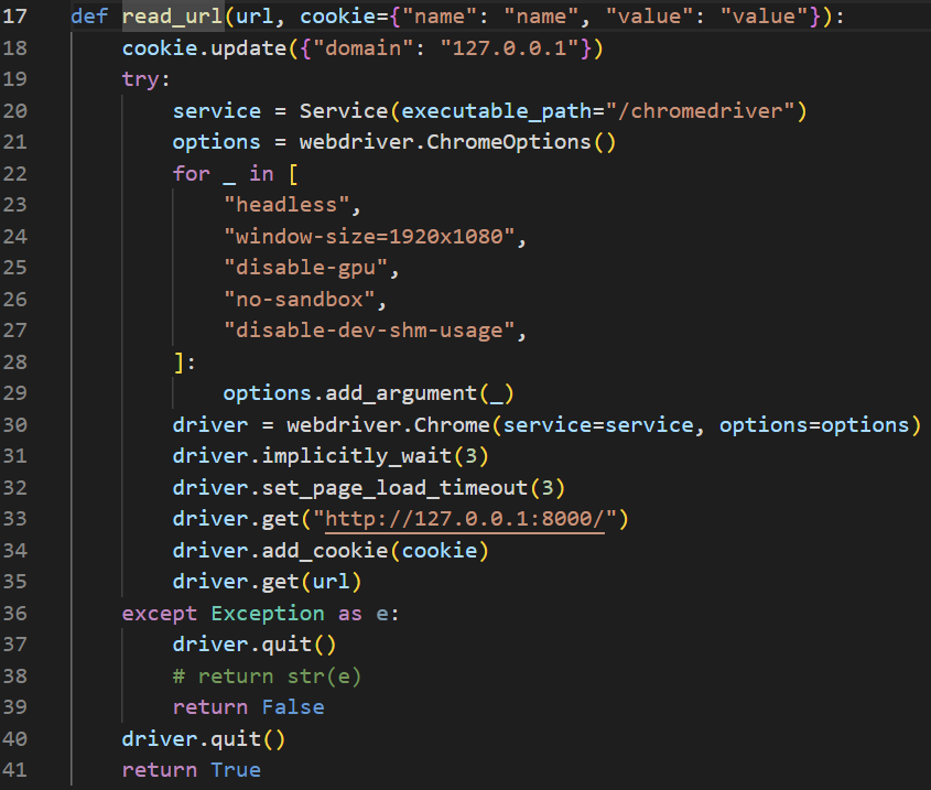 그래서 check_xss 함수에 보내는 쿠키의 value 값이 우리가 찾아야 할 flag 값으로 추측된다.