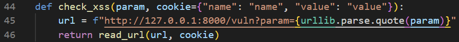 def check_xss(param, cookie={"name": "name", "value": "value"}):