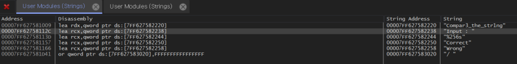 디버거를 열어서 문자열 검색을 진행했다.
