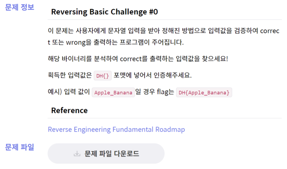 [Dreamhack] Reversing Basic Challenge #1 (0) | 2024.03.27 |