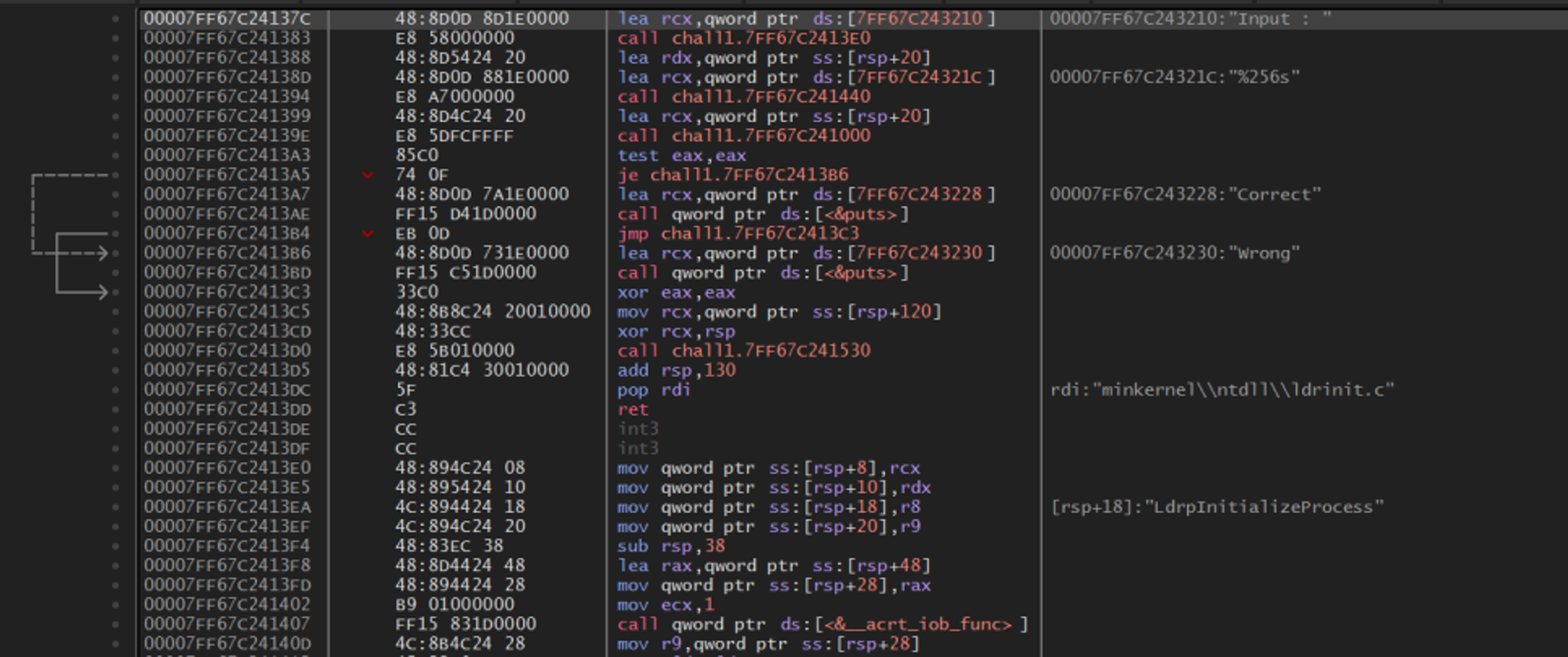 실행 화면은 #0과 같은 프로그램이어서 어김없이 문자열을 찾아서 해당 코드로 이동했다.