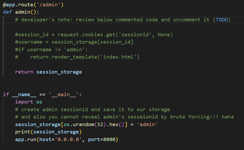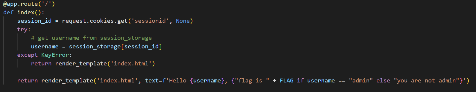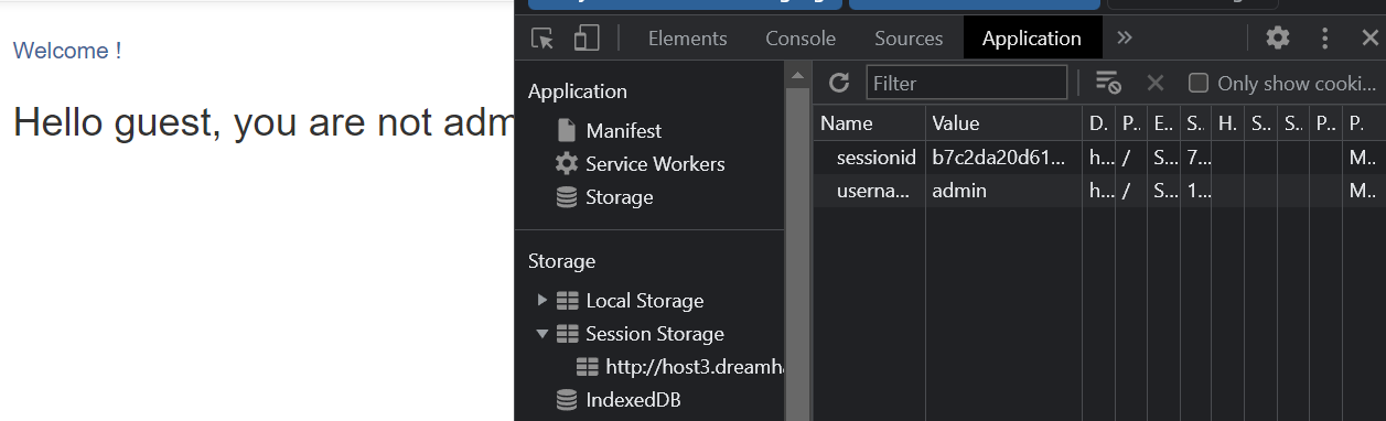 app.route('/admin')을 보니 친절하게도 session_storage를 출력해 준다고 해서 해당 URL로 접속했다.