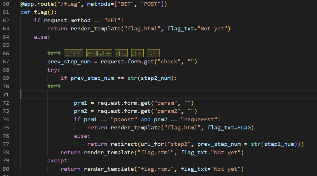근데 여기선 리턴값이 flag.html이 아니라 step2.html 이라서 뭔 의미가 있나 싶다.