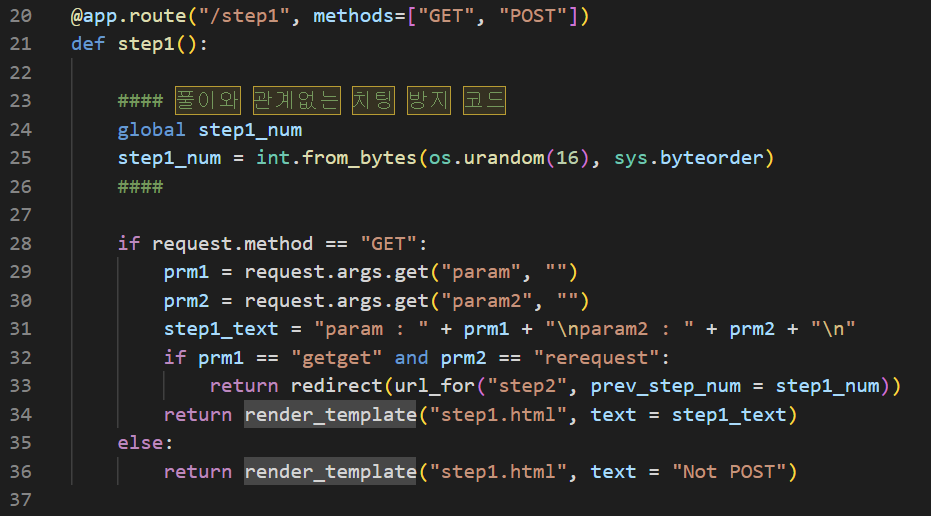 코드 33번째 줄에서 url.for()함수를 통해 step1_num 값이 전달된 것으로 보인다.