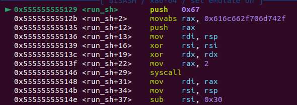 이를 위해 stack에 /tmp/flag를 push하여 위치시키도록 해야 한다.
