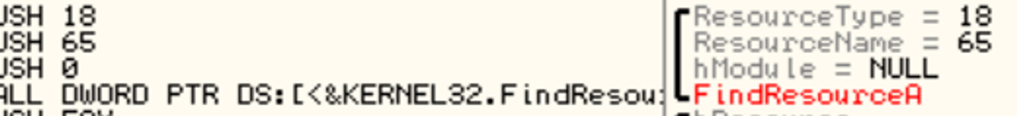 FindResourceA는 hModule(현재 실행도는 프로세스에 대한 핸들), IpName(resource의 ID), IpType(resource의 type) 총 세 개의 인자가 있다. 여기서 resource의 ID에 주목하여 ID가 0x65인 리소스를 가지고 있는지 확인해 봐야 된다고 한다.