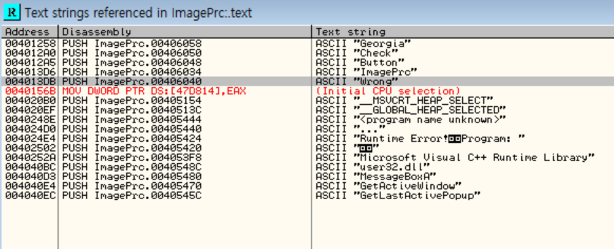Flag와 연관이 있을 것이라 생각하고 올리디버거를 열었다.