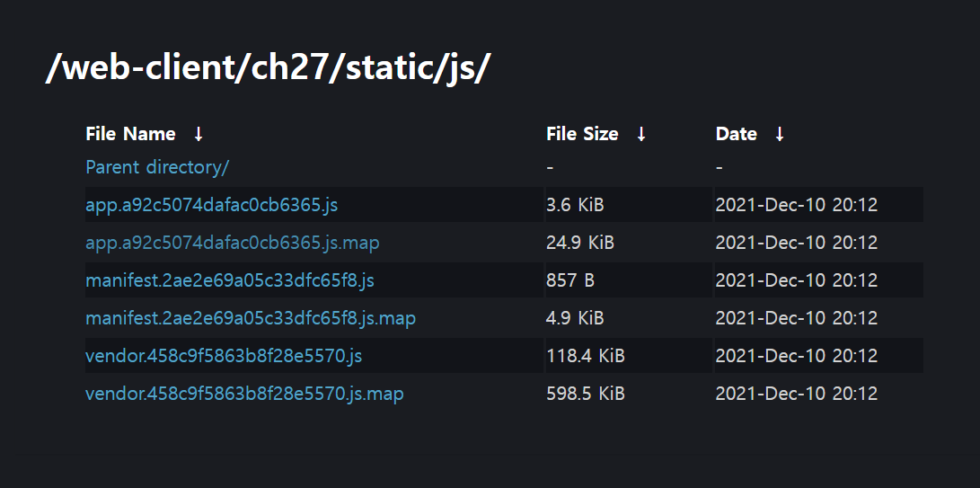 해당 소스코드를 확인해 보기 위해 url에 /static/js로 이동하였다.