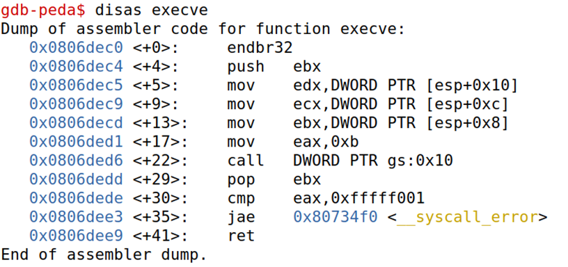 -static : 옵션은 컴파일된 프로그램에 동적 라이브러리(dynamic library)를 사용하지 않고, 모든 라이브러리를 정적으로 링크하도록 하는 옵션. 정적 링크를 사용하면 컴파일된 실행 파일에 모든 라이브러리 함수가 포함되므로, 실행 파일이 외부에 의존하지 않고 독립적으로 실행될 수 있게 됨. (해당 옵션이 없으면 disas execve의 제대로 된 결과를 띄우지 못함. execve는 Dynamic Link Library로 링킹되어 있기 때문에 정적 링크 옵션을 추가하여야 되는 것이다.)