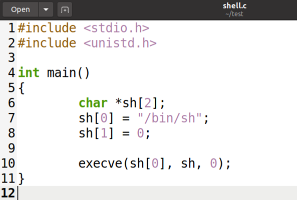 1. /bin/sh 명령어 실행 소스 코드 작성