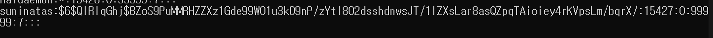 cmd 창에서 type shadow를 통해 shadow 파일을 읽어 봤더니