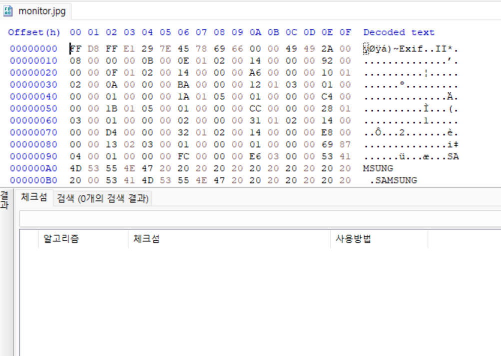 monitor.jpg의 헥사 코드를 잘 보다 보면 위와 같이 jpg 시그니처 코드가 한 개만 있지 않다.