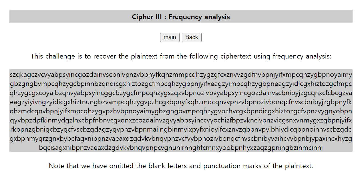 빈도 분석을 이용하여 생성한 암호문을 평문으로 바꾸라고 한다.