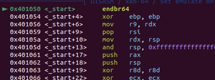 명령어를 실행하고 보면 401050을 가리키고 있는 걸 확인할 수 있다.