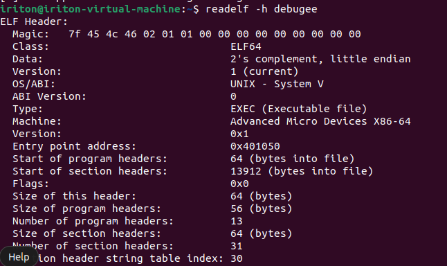 readelf -h [파일명] 명령어로 실행 전 헤더 분석이 가능하다.