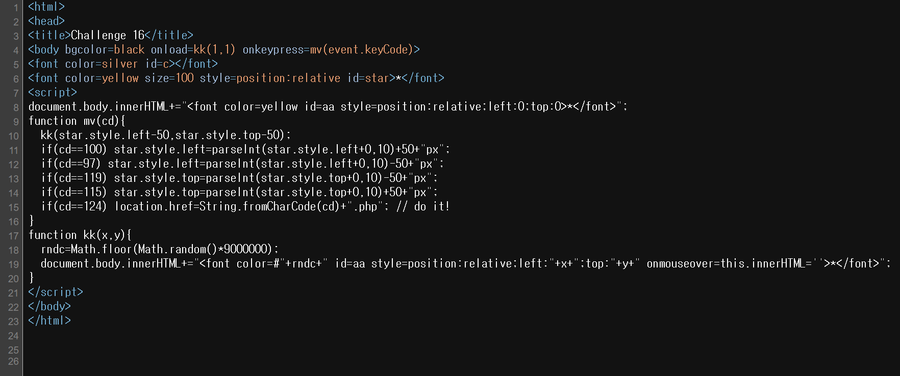 아스키 코드를 참고하면, wasd키로 별이 이동하고 |(파이프)키를 통해 문제가 해결된다.
