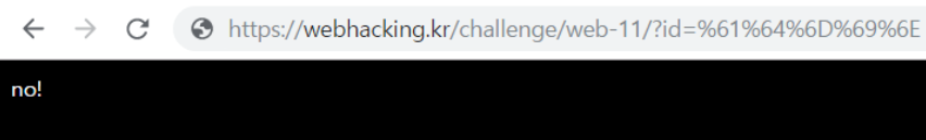 그리고 admin이면 안 된다. (직접적으로 ?id=admin을 쓰면 안 된다는 뜻이다.)