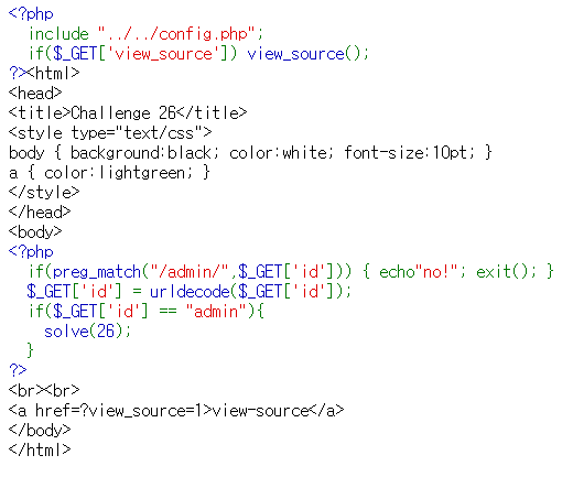 solve(26)에 해당하는 조건문을 보니 id가 admin이 되어야 한다.