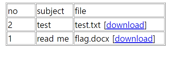 그럼 test.txt 옆에 다운로드 버튼을 눌러서 flag.docx가 다운로드 될 수 있게 연결된다.