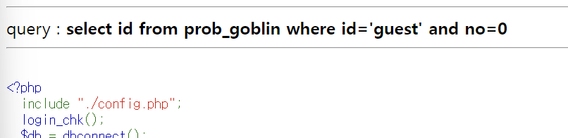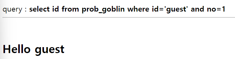 $query = "select id from prob_goblin where id='guest' and no={$_GET[no]}";