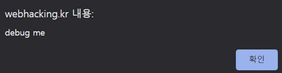 문제를 클릭하니 까만 화면과 함꼐 debug me 라는 경고창이 떴다.