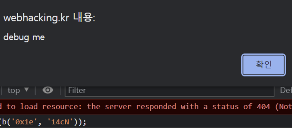 아까 debug me라고 뜬 경고창이 생각나서 [Ctrl + F]로 alert를 쳐 봤다.